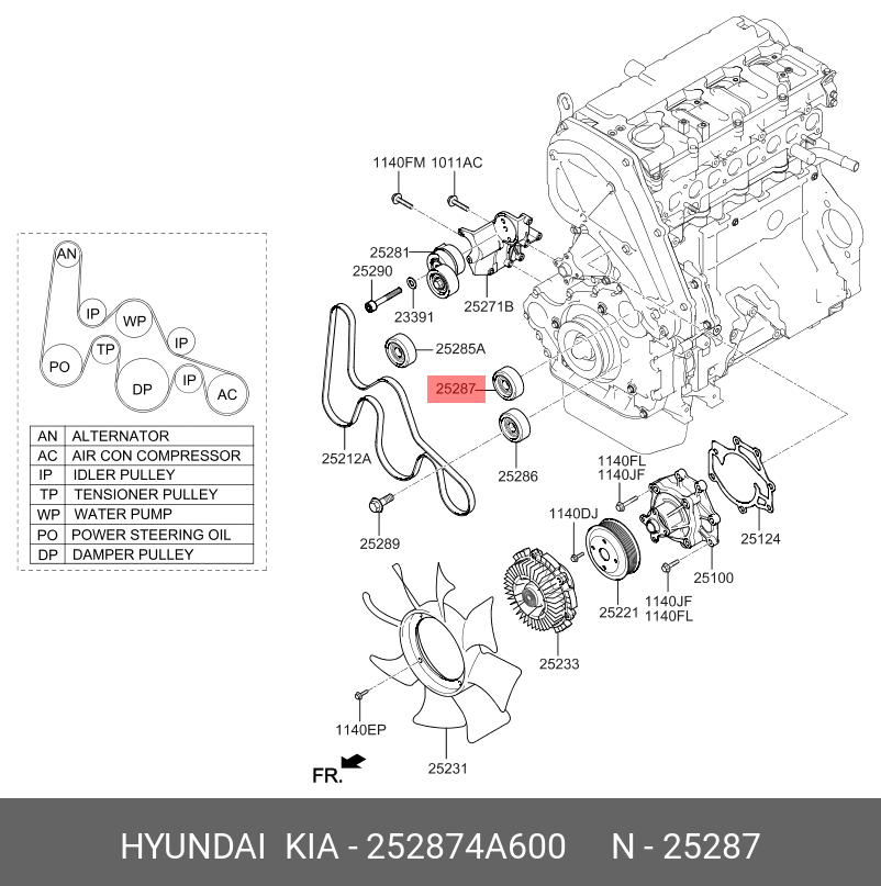 252874A600 HYUNDAI KIA Ролик приводного ремня HYUNDAI Porter 2,Starex H-1 (14-) KIA Bongo 3 (14-) (2.5-