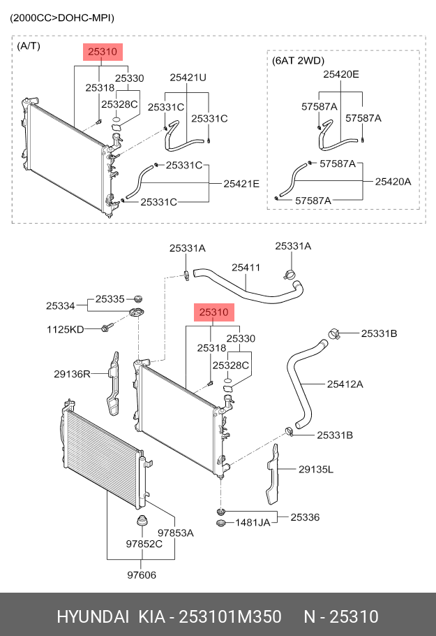 253101M350 HYUNDAI KIA Радиатор KIA Cerato (09-) охлаждения двигателя OE