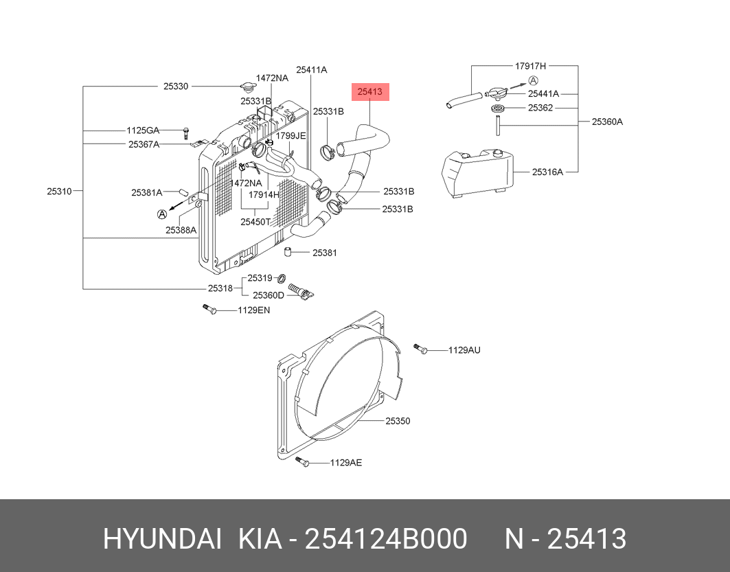 254124B000 HYUNDAI KIA Патрубок HYUNDAI H-100 системы охлаждения OE