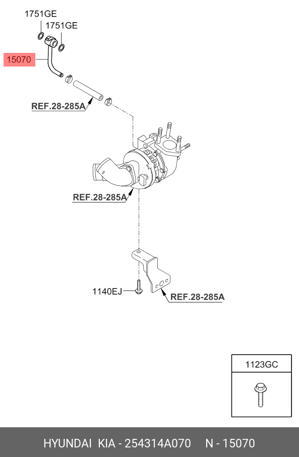 254314A070 HYUNDAI KIA Трубка HYUNDAI Starex H-1 (01-) системы охлаждения OE