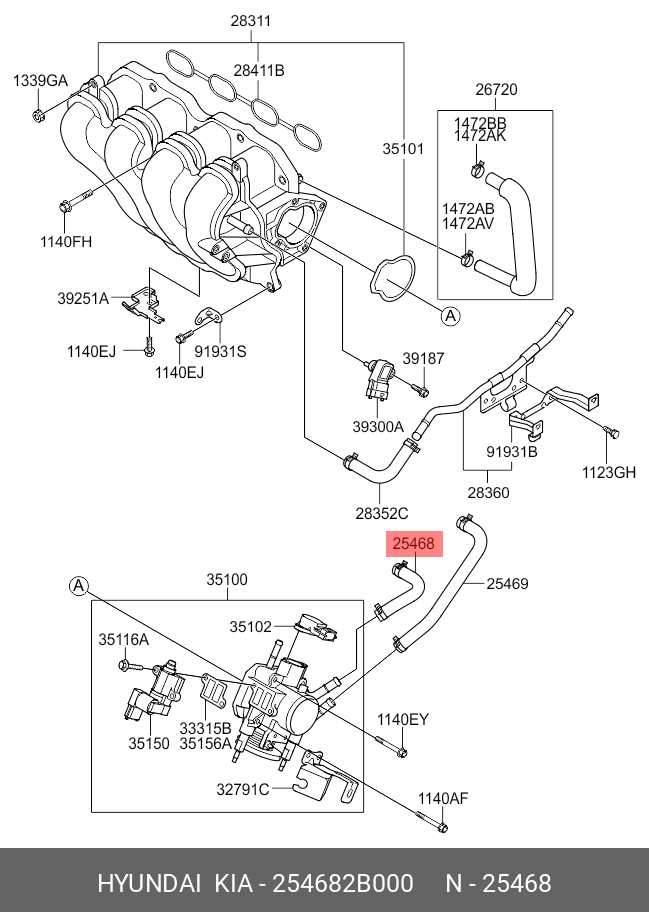254682B000 HYUNDAI KIA Шланг HYUNDAI Elantra (06-) системы охлаждения OE