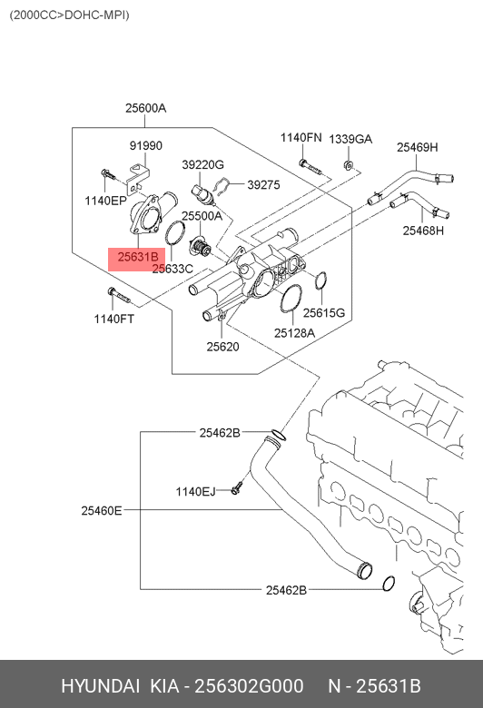 256302G000 HYUNDAI KIA Фитинг системы охлаждения 25630-2G000
