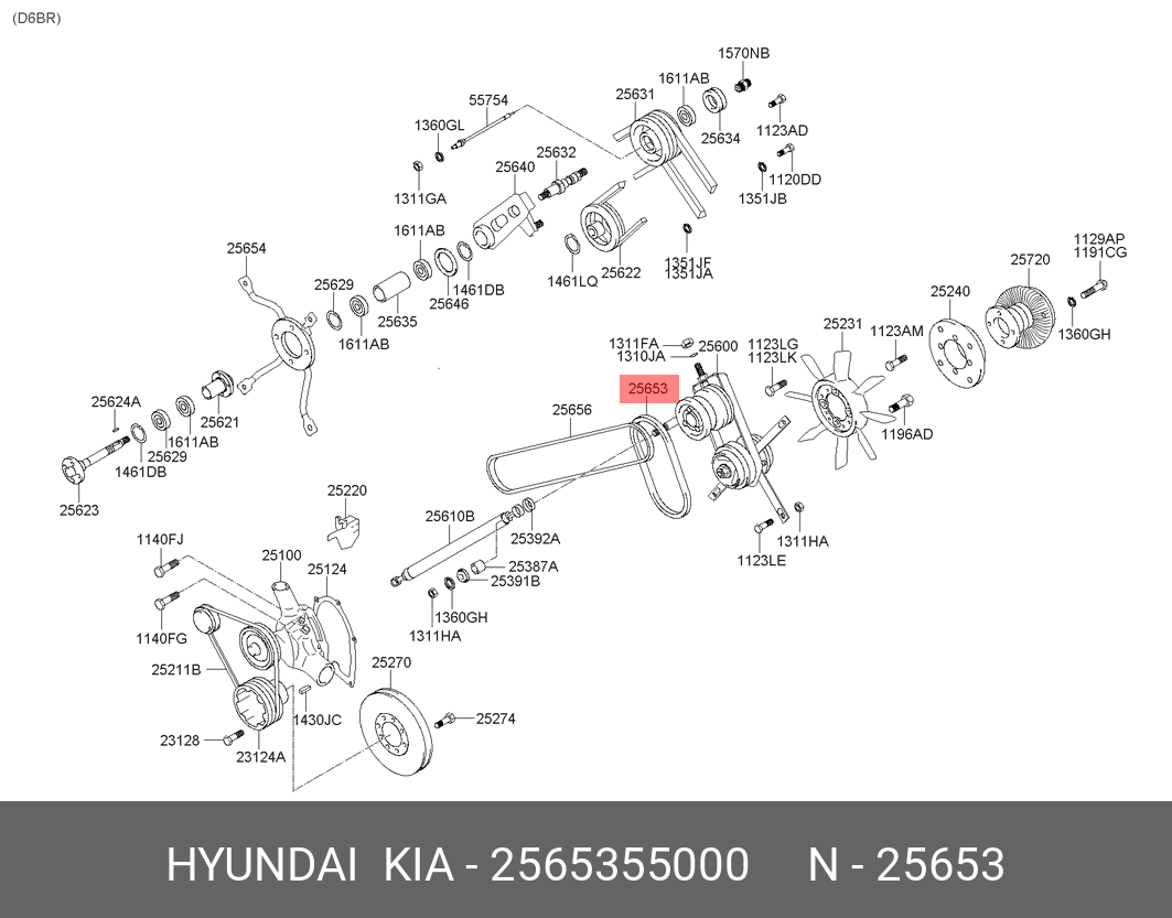 2565355000 HYUNDAI KIA Ремень B-34 вентилятора (короткий) AERO-TOWN (пр-ль ROULUNDS)