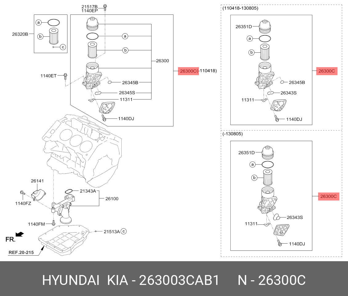 263003CAB1 HYUNDAI KIA Фильтр масляный HYUNDAI Grand Santa Fe (13-) KIA Sorento (12-) (3.3/3.5) в сборе