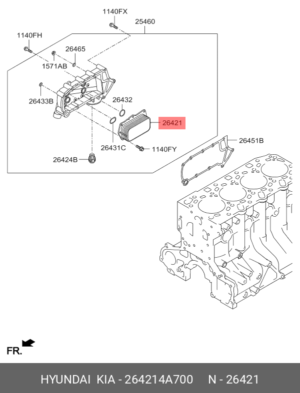 264214A700 HYUNDAI KIA Теплообменник HYUNDAI HD35 (17-) (D4CB),Starex H-1 (07-) (2.5-A2) масляный OE