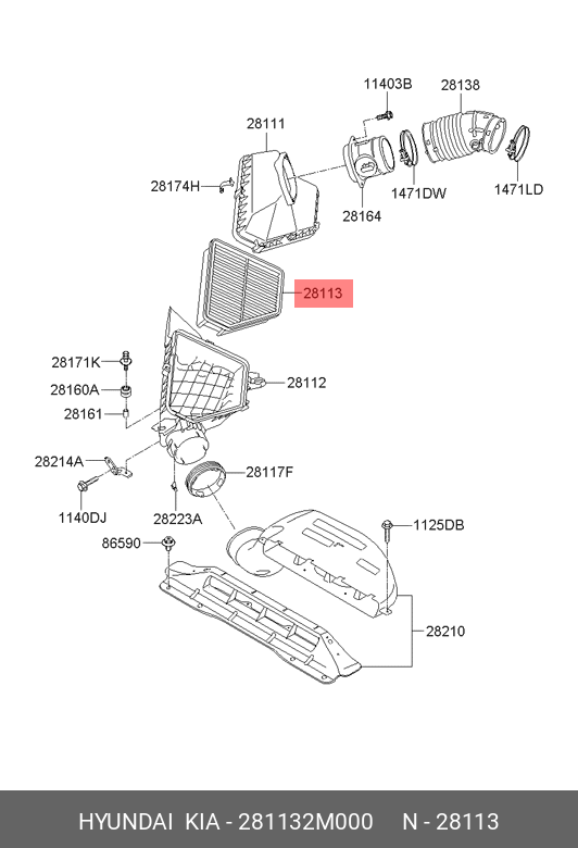 281132M000 HYUNDAI KIA Фильтр воздушный HYUNDAI Genesis (08-) OE