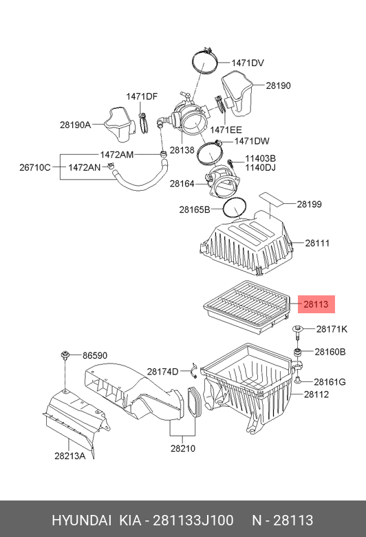 281133J100 HYUNDAI KIA Фильтр воздушный HYUNDAI ix55 (3.8) OE