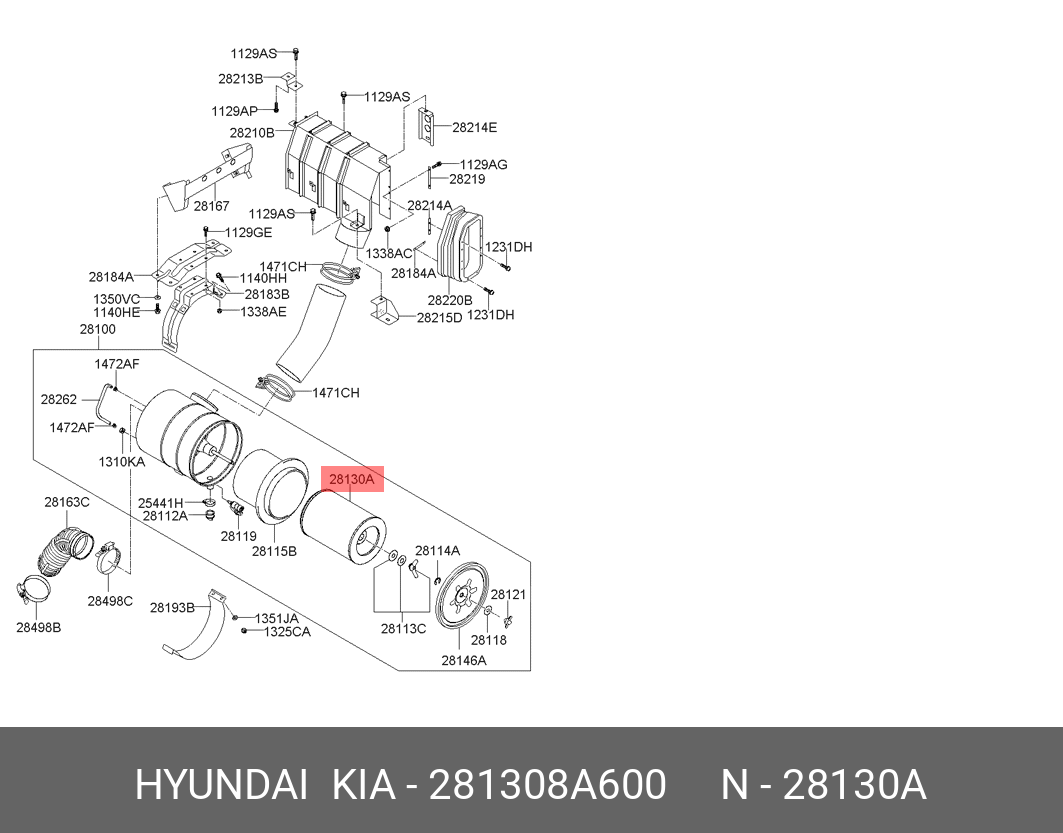 281308A600 HYUNDAI KIA Фильтр воздушный (H-440, D-285, d-150) AERO (пр-ль WOOIL.CO)