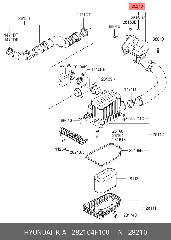 282104F100 HYUNDAI KIA Патрубок HYUNDAI Porter 2 корпуса фильтра воздушного OE