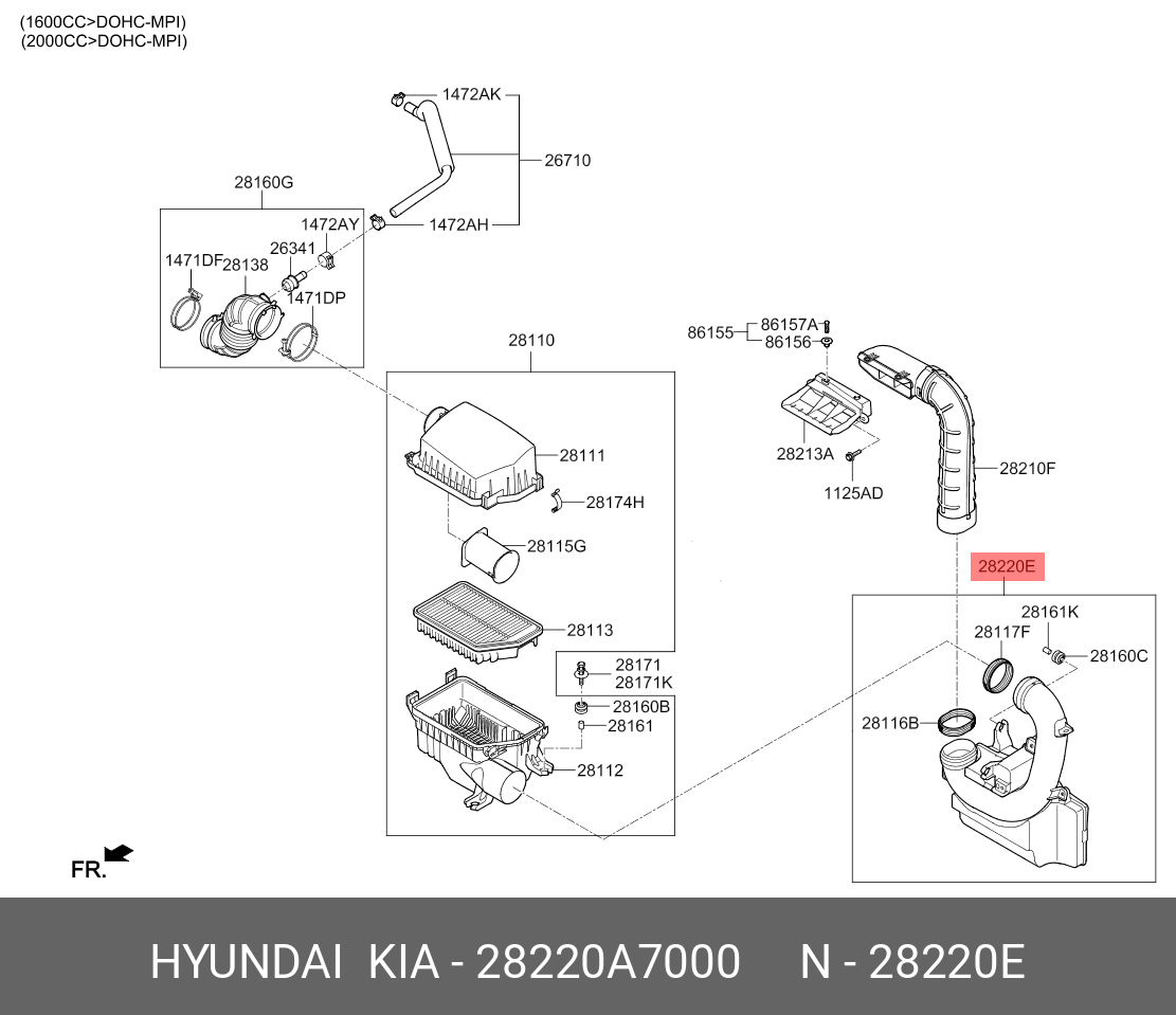 28220A7000 HYUNDAI KIA Резонатор KIA Cerato (13-) фильтра воздушного OE