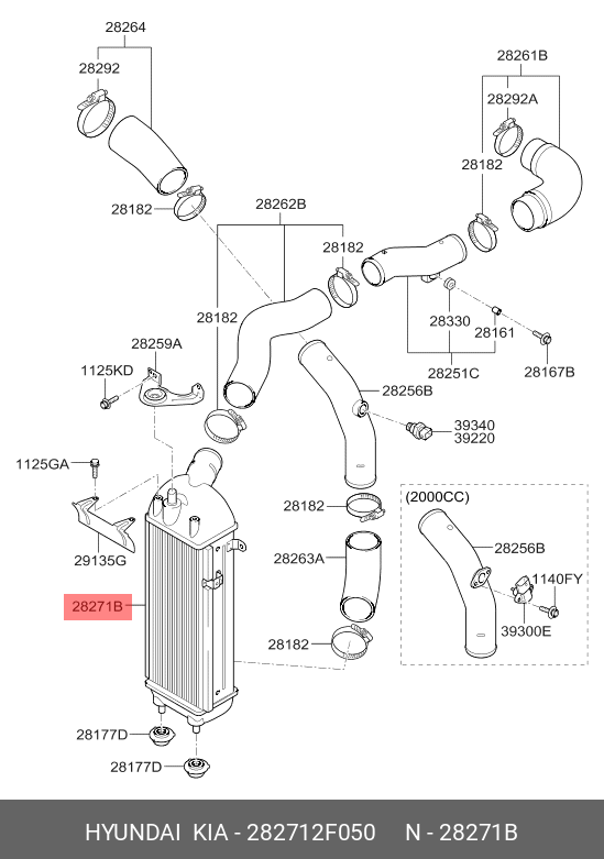 282712F050 HYUNDAI KIA Охладитель HYUNDAI Santa Fe (09-) (2.0/2.2 CRDI) наддувного воздуха OE