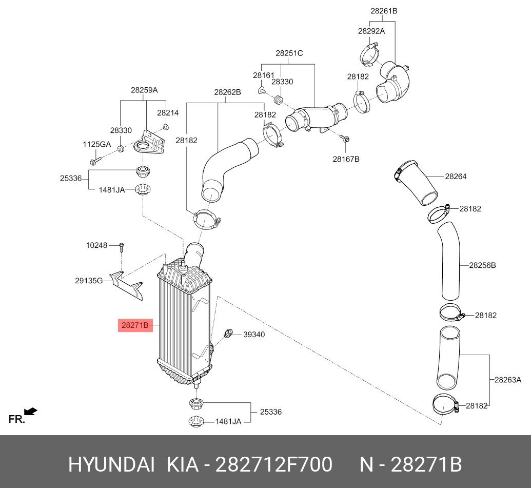 282712F700 HYUNDAI KIA Охладитель HYUNDAI Santa Fe (12-) (2.0/2.2 CRDI) наддувного воздуха OE