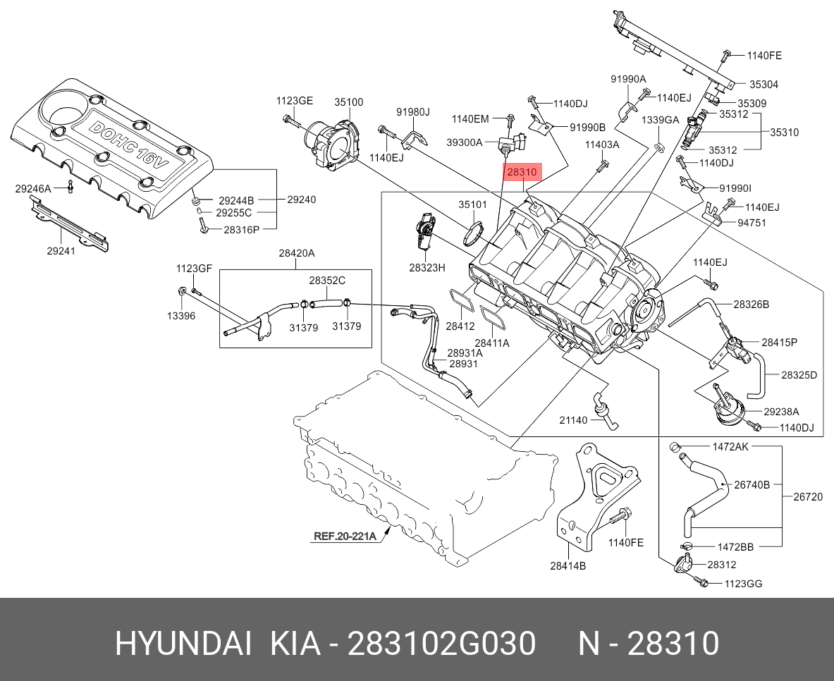 283102G030 HYUNDAI KIA Коллектор HYUNDAI Santa Fe (09-),ix35 (10-) KIA Sorento (10-),Sportage (10-) впу