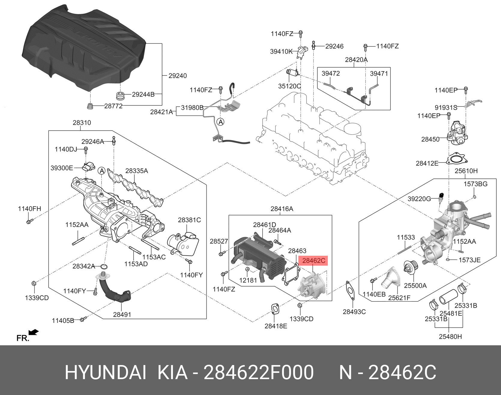 284622F000 HYUNDAI KIA Клапан HYUNDAI Santa Fe (05-) контроля выхлопных газов (EGR) OE