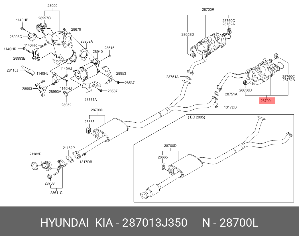 287013J350 HYUNDAI KIA Глушитель HYUNDAI ix55 (08-) (3.0 TCI) задняя часть левый OE