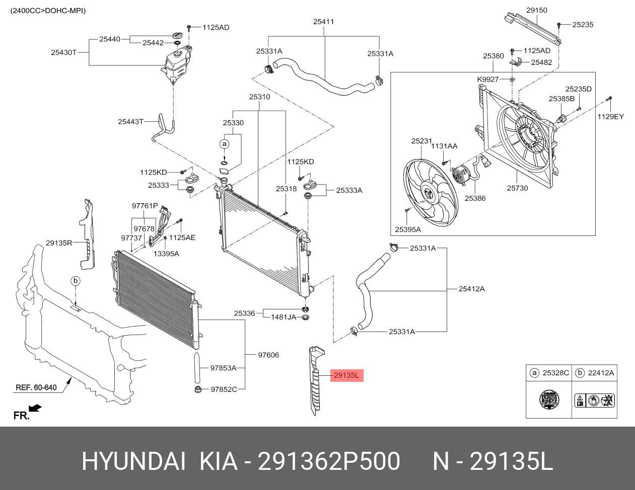 291362P500 HYUNDAI KIA Держатель KIA Sorento (12-20) радиатора OE