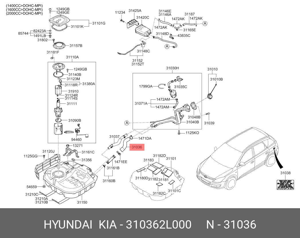 310362L000 HYUNDAI KIA Шланг топлива I30'07- HYUNDAI/KIA