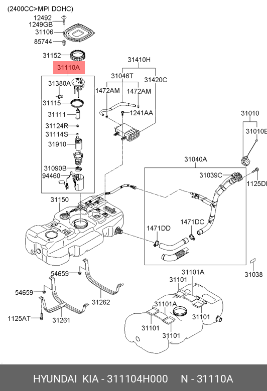 311104H000 HYUNDAI KIA Насос топливный HYUNDAI Starex H-1 (07-) OE