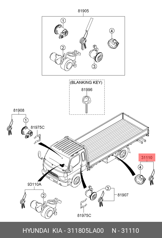 311805LA00 HYUNDAI KIA Крышка бака топливного HYUNDAI HD65,78 (07-) с ключами OE