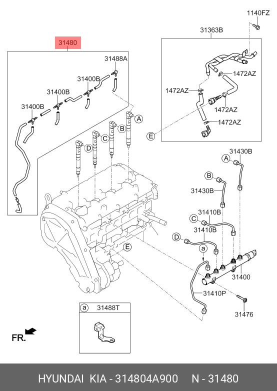 314804A900 HYUNDAI KIA Шланг топливный HYUNDAI Starex H-1 (15-) (2.5-A2) (Е6) сливной от форсунок в сбо