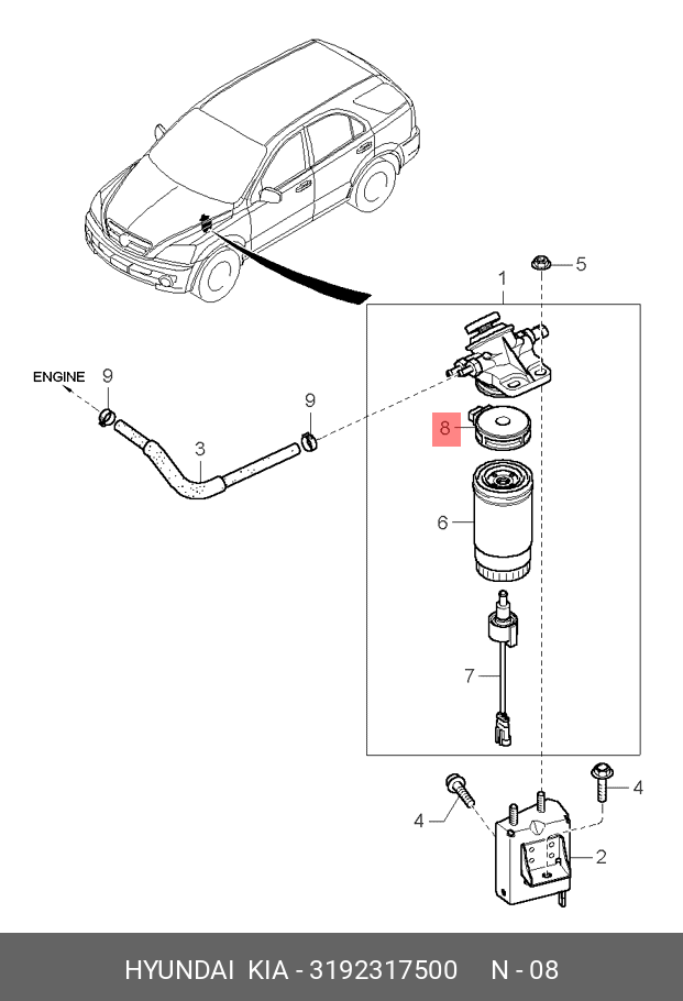 3192317500 HYUNDAI KIA ПОДОГРЕВАТЕЛЬ ТОПЛИВА В СБОРЕ 12В (10702070/180519/0087664/196 - КОРЕЯ, РЕСПУБЛИ