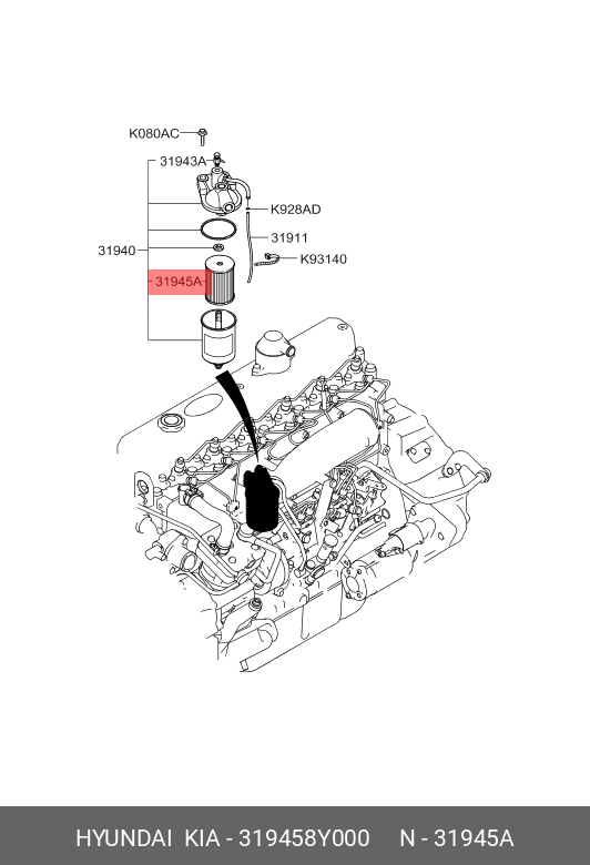 31945-8Y000 HYUNDAI KIA Фильтр топливный HYUNDAI HD120,AeroTown дв.D6DA19/22 OE