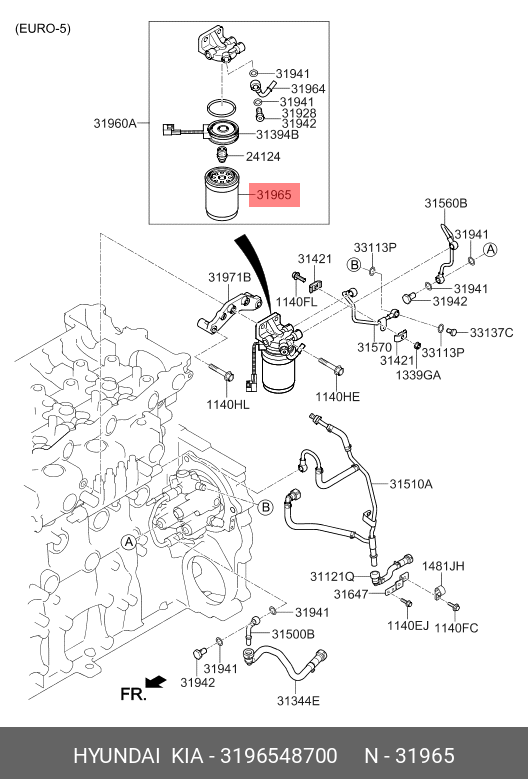 3196548700 HYUNDAI KIA Фильтр топливный HYUNDAI HD65,78 дв.D4GA ЕВРО-5 тонкой очистки OE