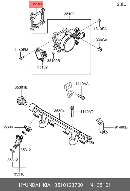 3510123700 HYUNDAI KIA Прокладка дроссельной заслонки 35101-23700