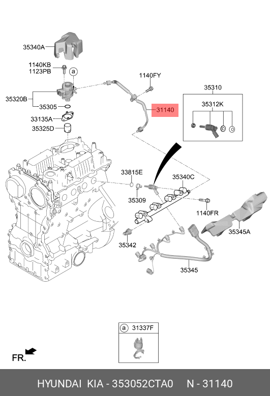 353052CTA0 HYUNDAI KIA Трубка топливная HYUNDAI G70 (18-) KIA Stinger (18-) (2.0TCI/GDI) к рампе OE