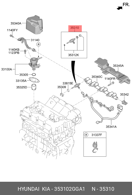353102GGA1 HYUNDAI KIA Форсунка HYUNDAI Santa Fe (15-) (2.4) KIA Sorento (15-) (2.4) топливная OE