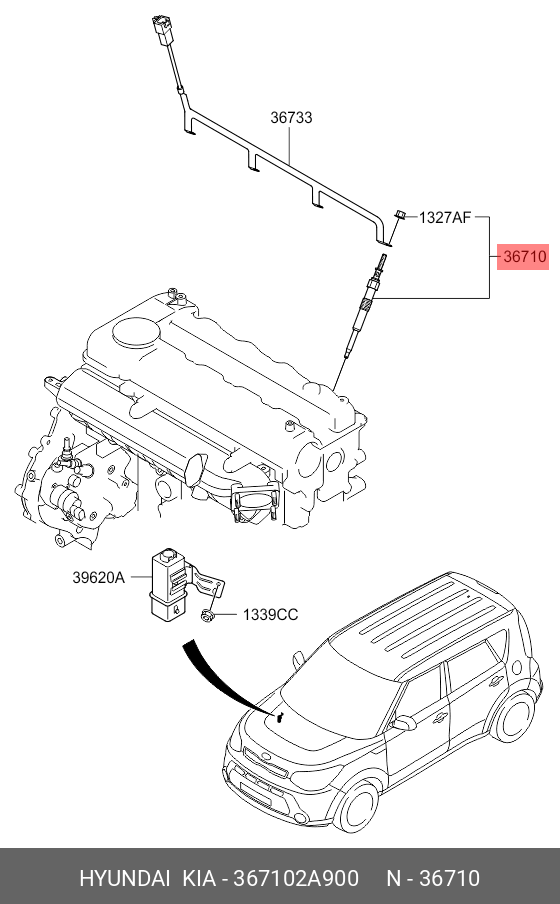 367102A900 HYUNDAI KIA Свеча накаливания HYUNDAI Tucson (14-),Elantra (16-) KIA Sportage (14-),Optima (