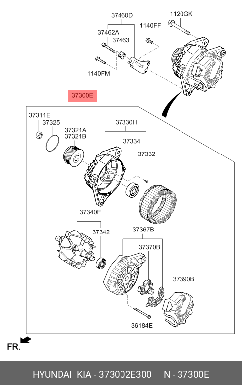 373002E300 HYUNDAI KIA Генератор HYUNDAI i40 (12-),ix35 (13-) KIA Soul (13-) (120A,13.5V) OE