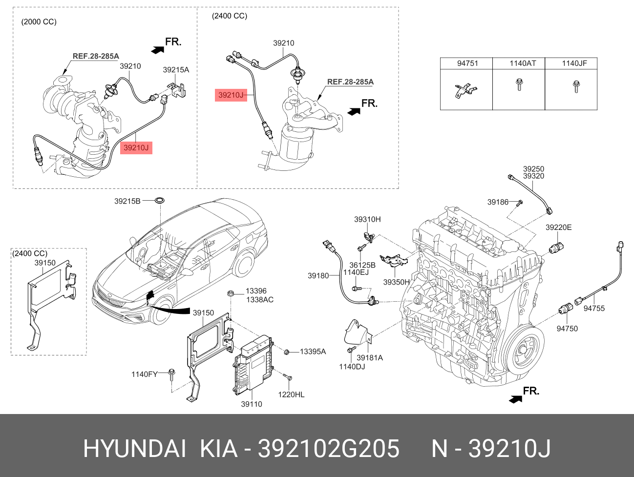 392102G205 HYUNDAI KIA Датчик кислорода KIA Sorento (15-)(2.4) нижний OE