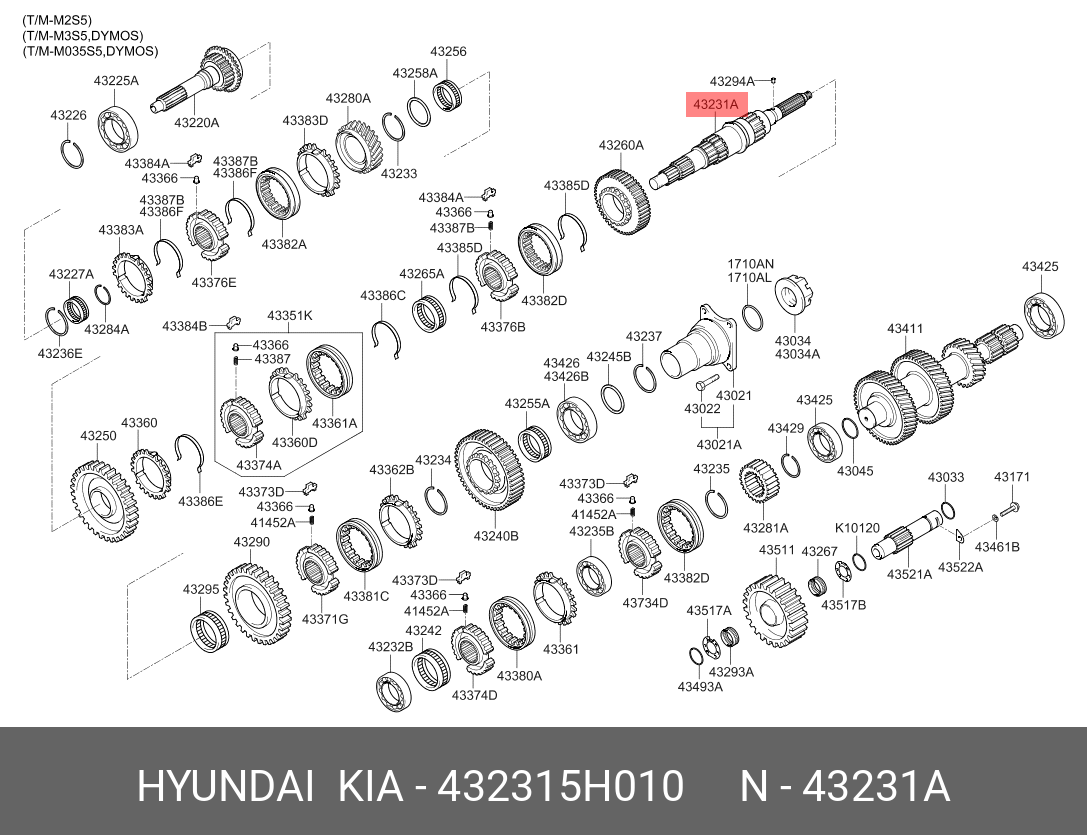 432315H010 HYUNDAI KIA Вал КПП HYUNDAI HD65,72,78,County дв.D4DB,D4DD (M035S5) вторичный OE
