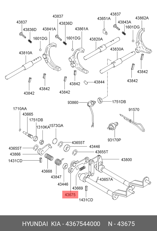 4367544000 HYUNDAI KIA Планка HYUNDAI Porter упорная селектора КПП OE