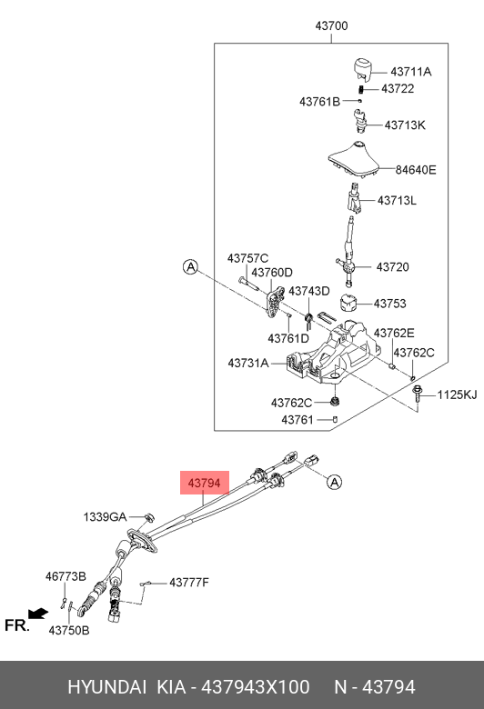 437943X100 HYUNDAI KIA Трос КПП HYUNDAI Elantra (11-) KIA Cerato (12-) OE