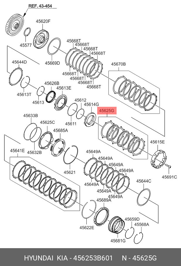 456253B601 HYUNDAI KIA Диск фрикционный АКПП HYUNDAI i40 (12-),ix35 (10-) комплект OE