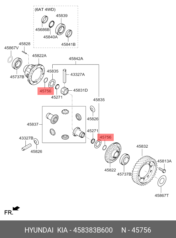 458383B600 HYUNDAI KIA Кольцо HYUNDAI Solaris дифференциала OE