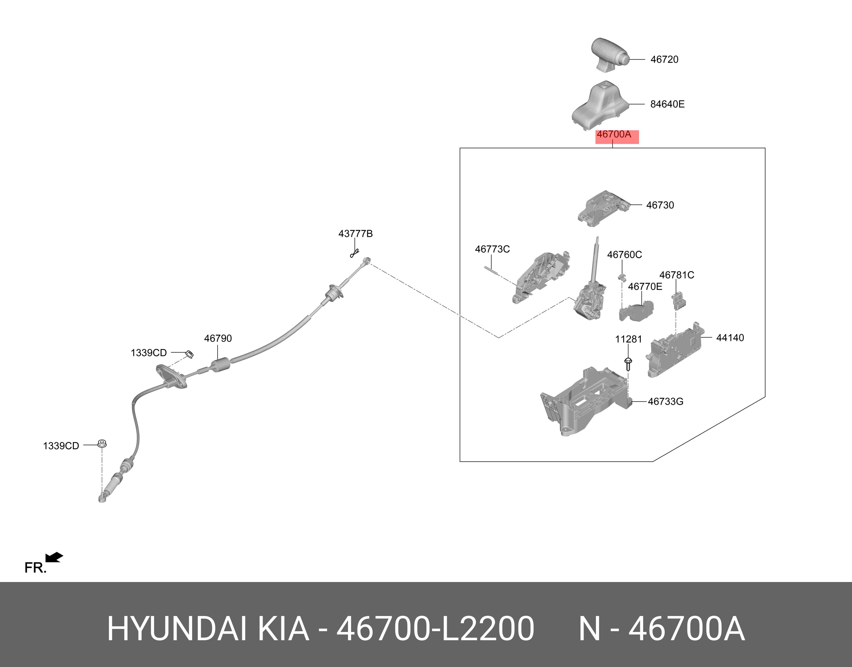 46700L2200 HYUNDAI KIA 46700L2200 РЫЧАГ ПЕРЕКЛЮЧЕНИЯ ПЕРЕДАЧ АКПП