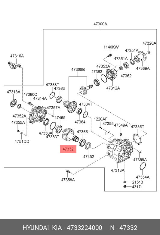 4733224000 HYUNDAI KIA Вал HYUNDAI ix55 (07-) коробки раздаточной OE