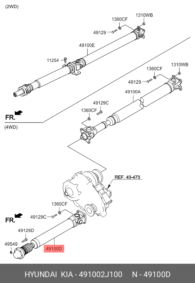 491002J100 HYUNDAI KIA Вал карданный KIA Mohave (07-) передний OE