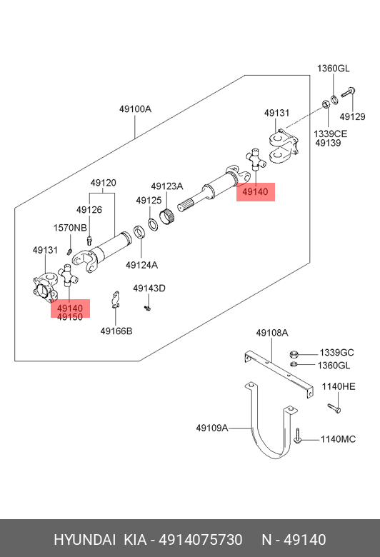 4914075730 HYUNDAI KIA Крестовина HYUNDAI HD260,270,AeroCity,AeroSpace вала карданного (205x49.20, 4 фл
