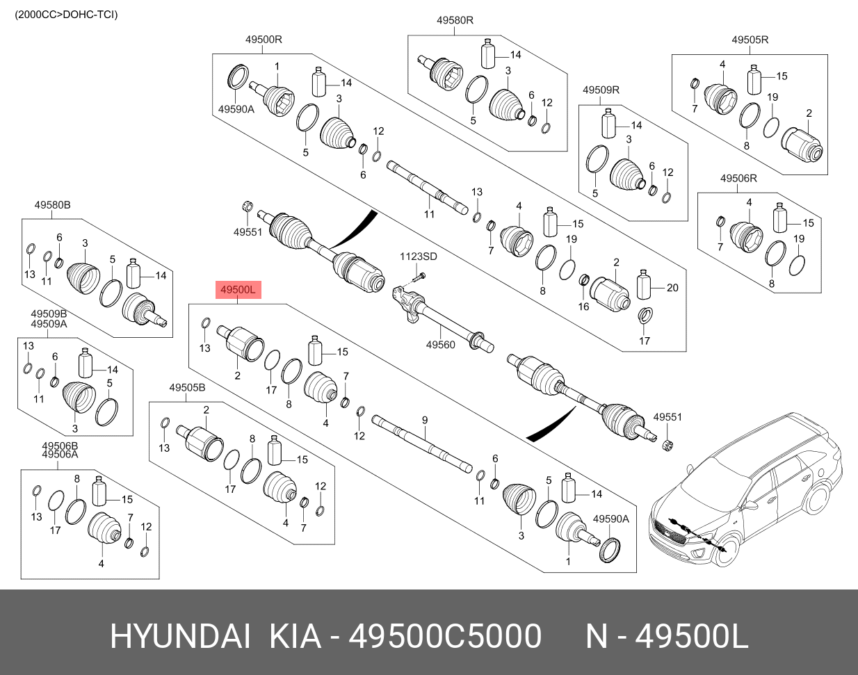 49500C5000 HYUNDAI KIA Привод KIA Sorento (15-) (2.2 TCI) колеса переднего левый OE