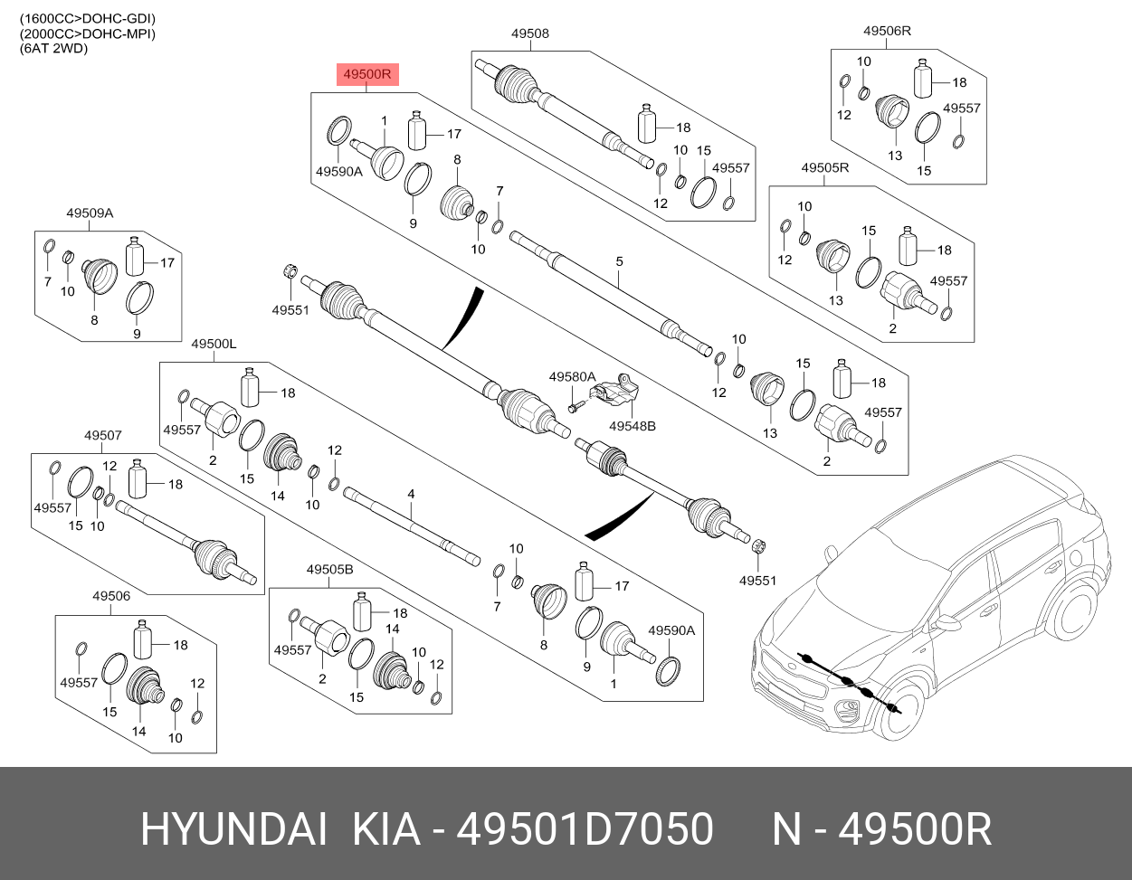 49501D7050 HYUNDAI KIA Привод HYUNDAI Tucson (16-) KIA Sportage (16-) (2.0) (АКПП/2WD) колеса переднего