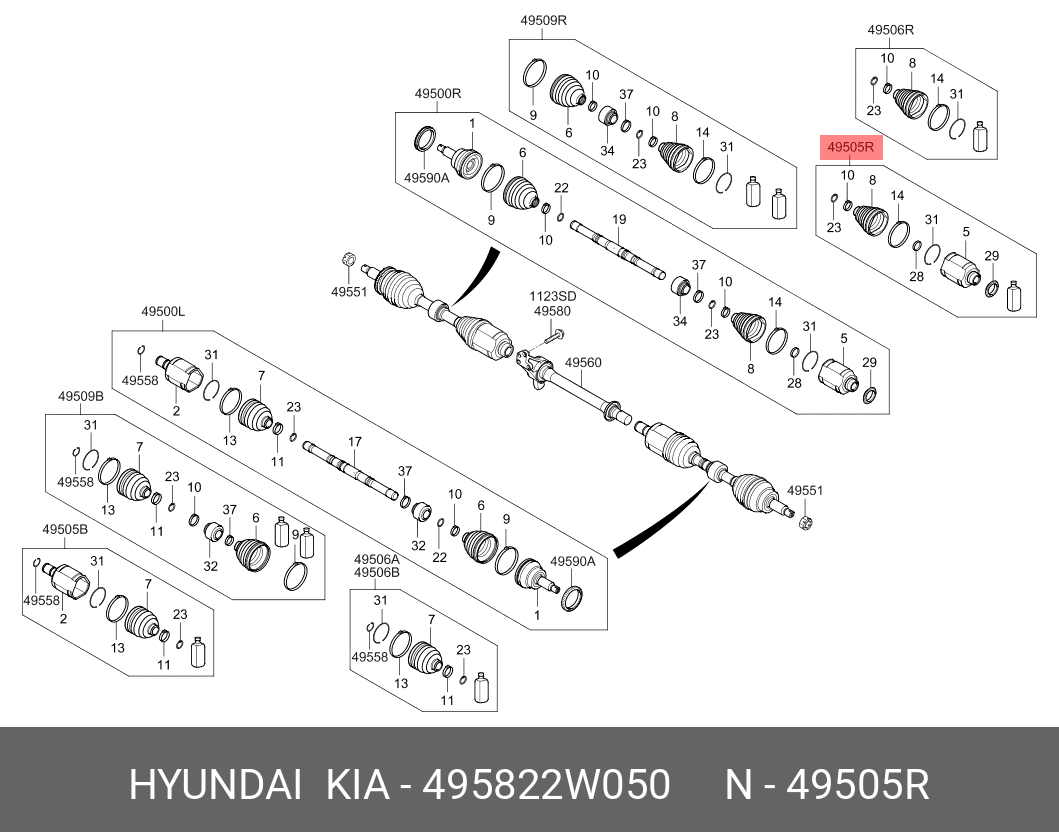 495822W050 HYUNDAI KIA ШРУС внутренний HYUNDAI Santa Fe (13-) правый OE