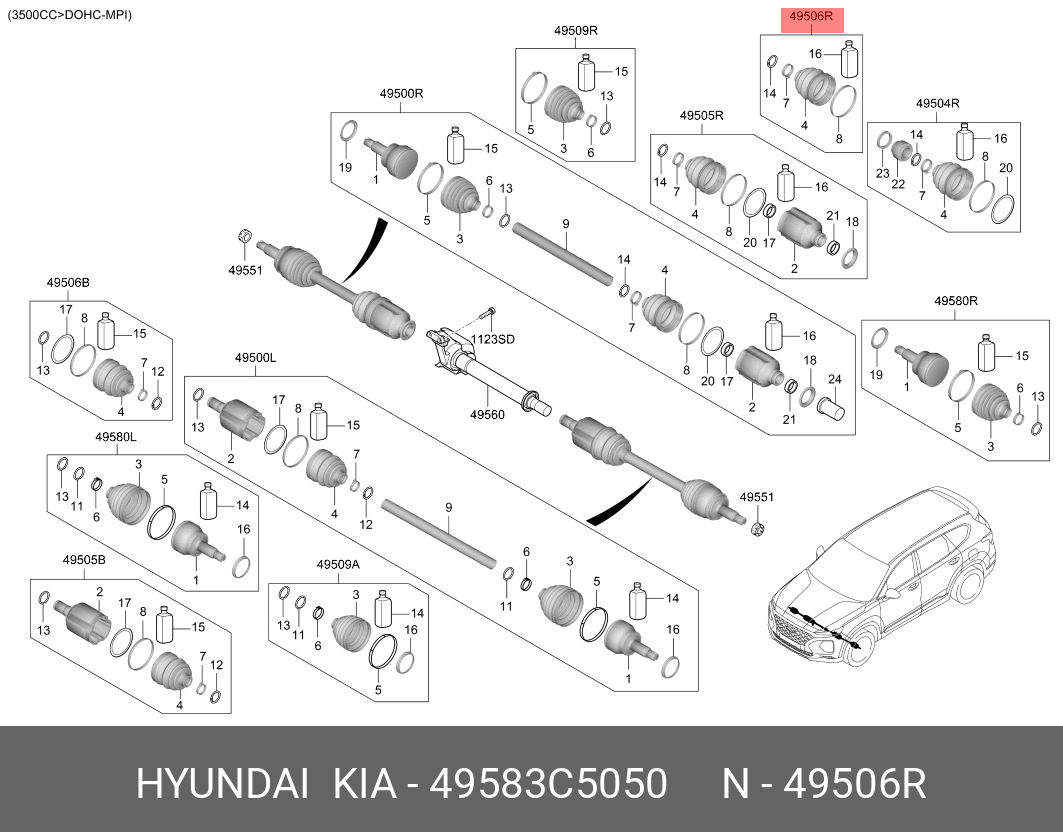 49583C5050 HYUNDAI KIA ПЫЛЬНИК ШРУСА КОЛЕСА, ПОСТАВЛЯЕТСЯ В КОМПЛЕКТЕ С 2 ХОМУТАМИ, 1 ДЕМПФЕР 49583-C50