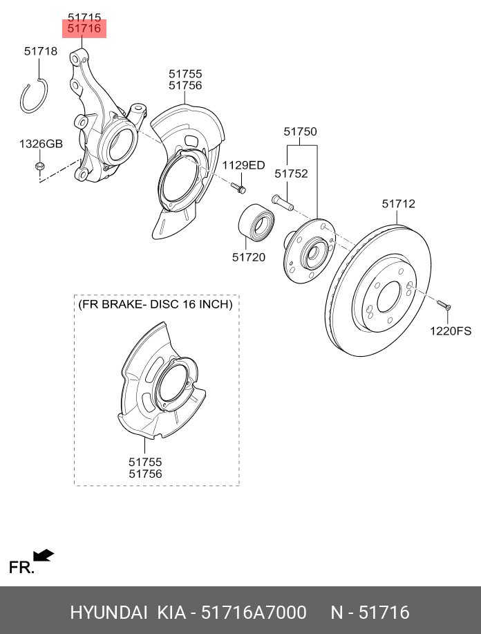 51716A7000 HYUNDAI KIA Кулак поворотный KIA Cerato (13-) правый OE