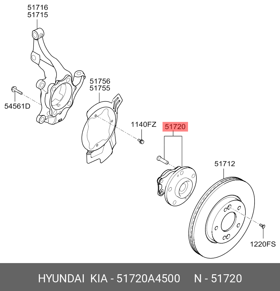 51720A4500 HYUNDAI KIA Ступица передняя с подшипником ABS