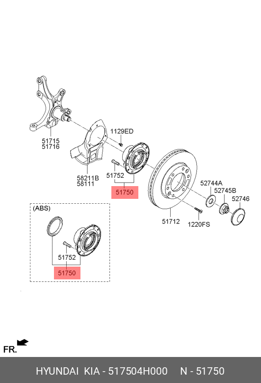 517504H000 HYUNDAI KIA Ступица HYUNDAI Starex H-1 (08-) передняя (без АБС) OE