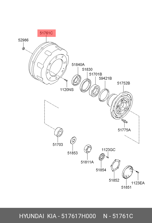 517617H000 HYUNDAI KIA Барабан тормозной HYUNDAI HD170,260,270,370,450,500 передний OE